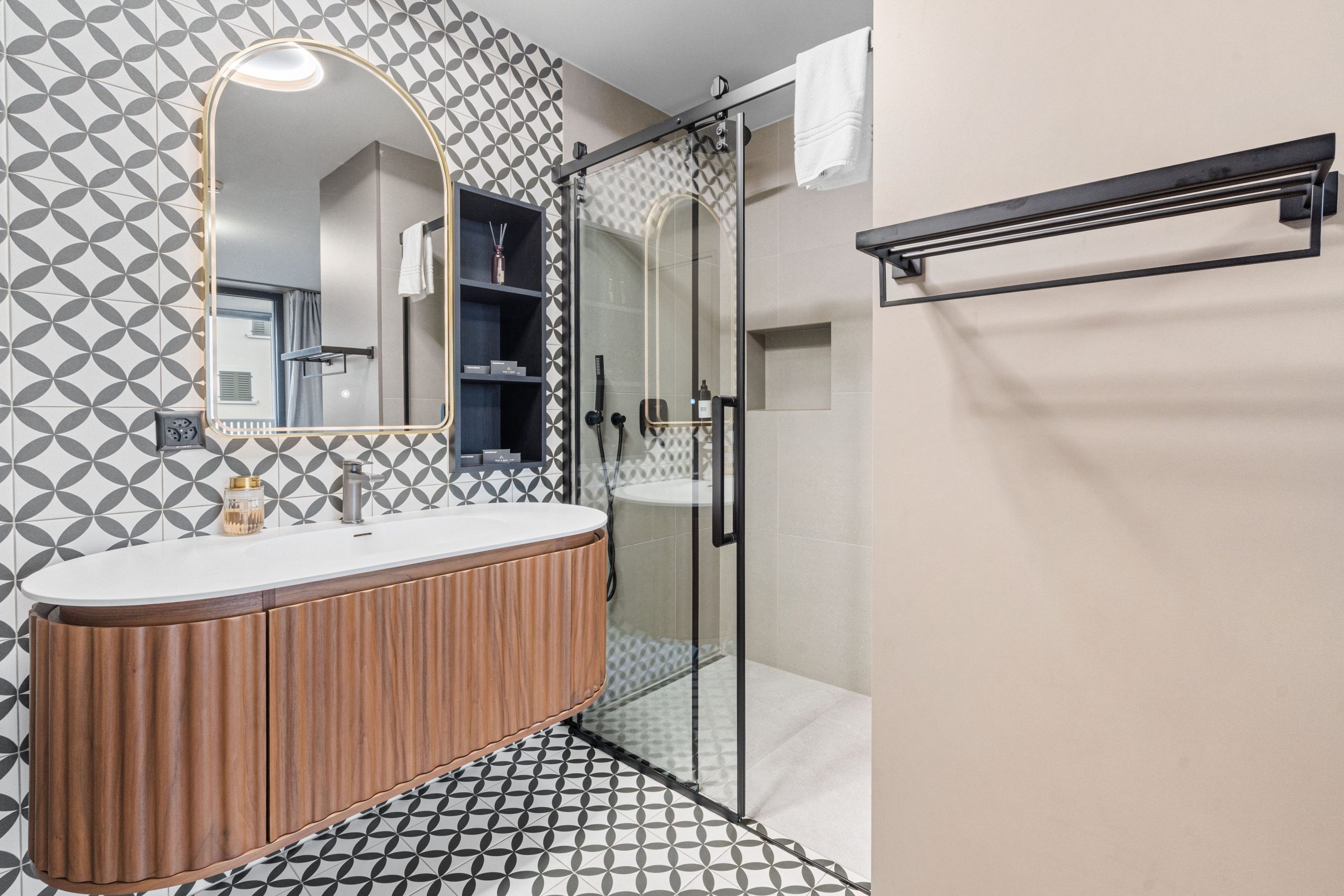 Equipped with a luxurious double bed, a practical sofa bed, a fully equipped kitchen, a modern bathroom with a shower and smart toilet, as well as a TV and high-speed internet.